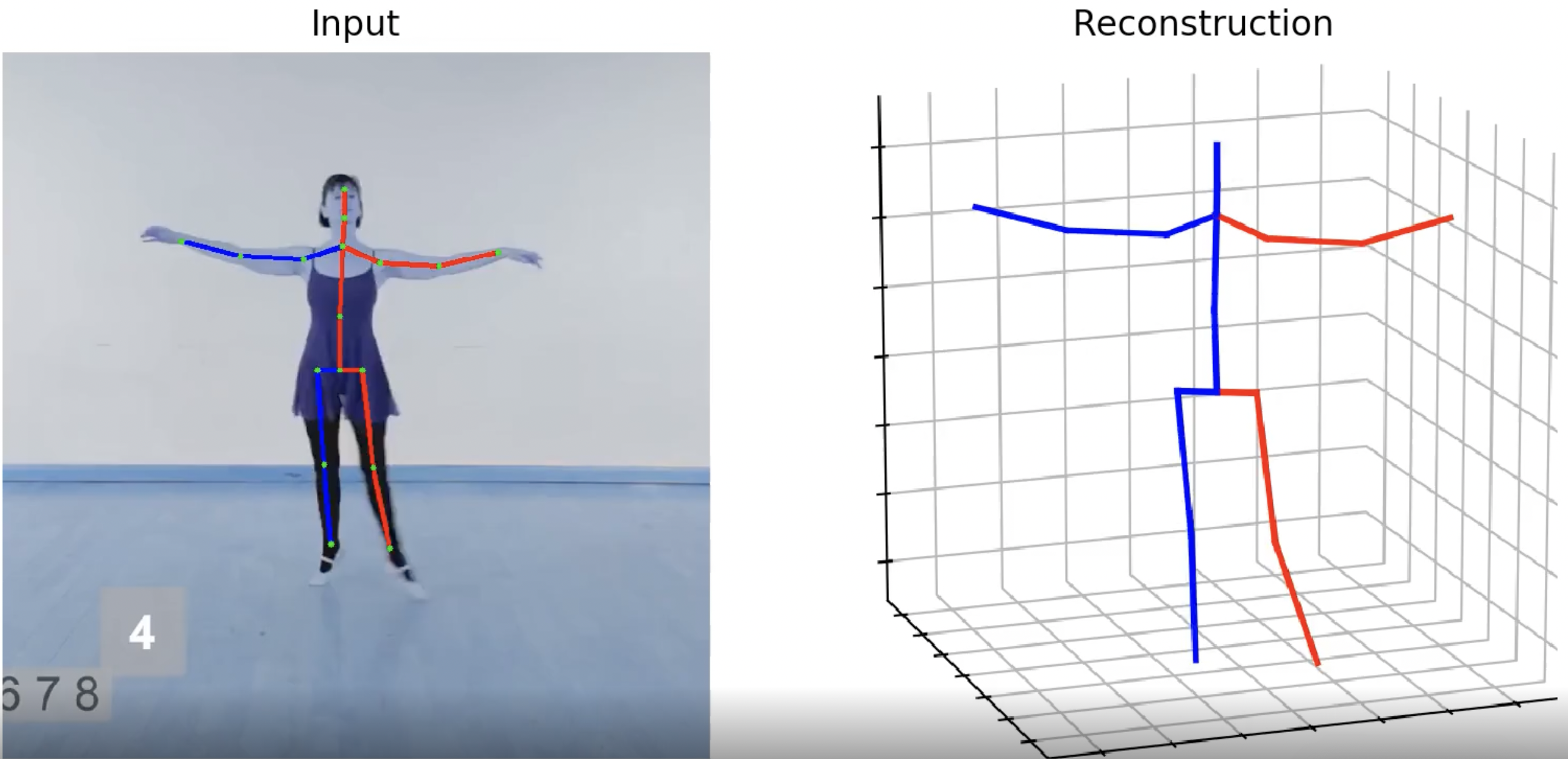 Estimate 2D and 3D human pose from a single-person image or short video. Return a visualization video with skeletal over...